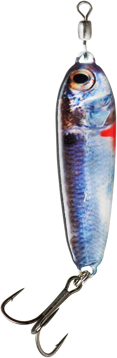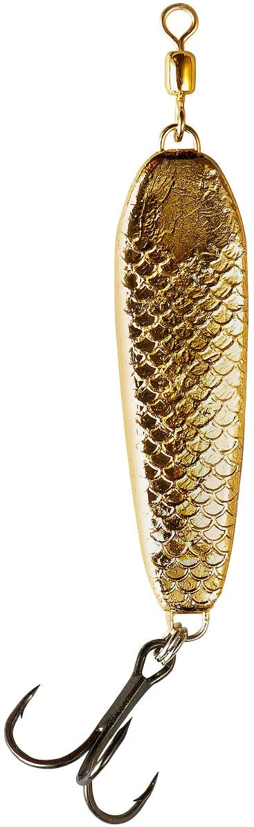 The War Eagle Jiggin’ Spoon is a jigging spoon. It is widely regarded as one of the best spoons on the market for taking deep bass in clear water, especially during the tough cold-weather season. Features high-quality construction, such as a swivel to prevent line twist, realistic finishes and a stout hook to handle violent thrashes from fish. Stamped from premium brass with a hammered finish, the Jiggin’ Spoon pumps out plenty of fish-attracting flash and vibration. Available in 6 colors and 2 weights.